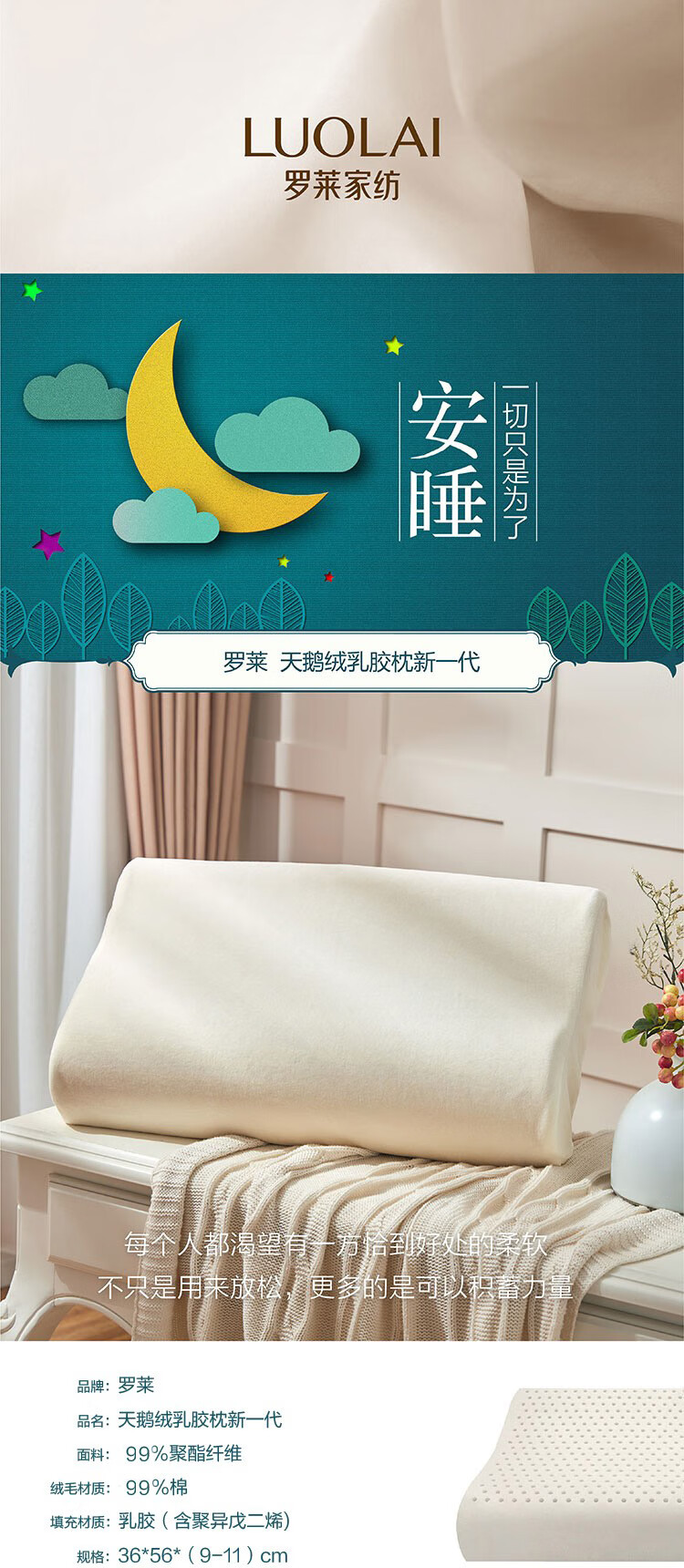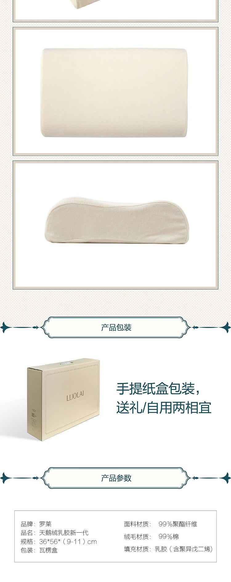 商品名称:罗莱家纺LUOLAI 天鹅绒乳胶枕新一代 36*56*9/11cm