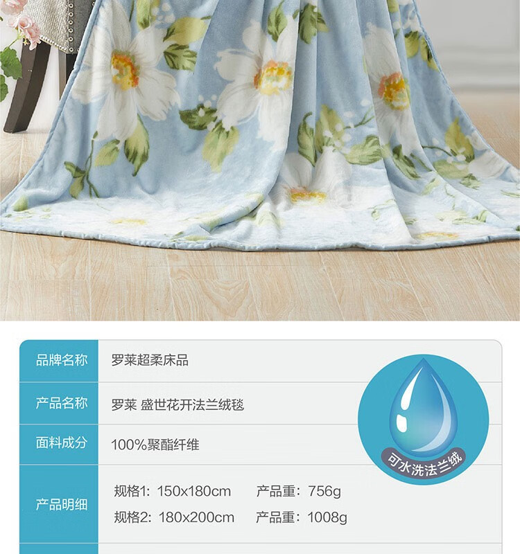 商品名称:罗莱(LUOLAI) 盛世花开法兰绒毯 150*180cm