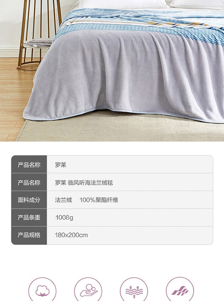 商品名称:罗莱家纺 临风听海法兰绒毯 150*200cm