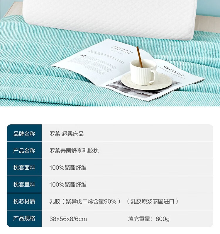 商品名称:罗莱(LUOLAI) 舒享乳胶枕 36*60*8/10cm