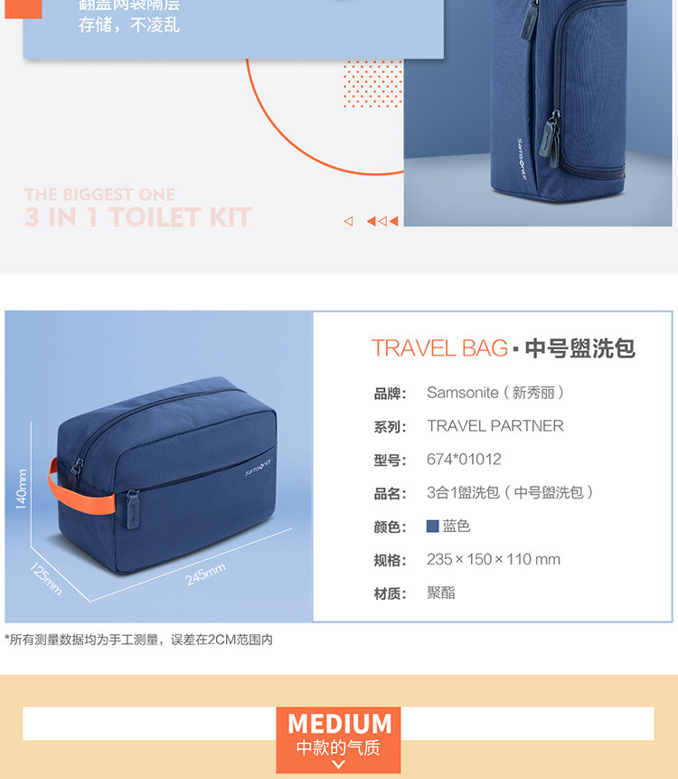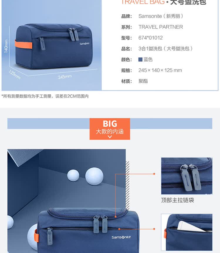 商品名称:新秀丽 数码包化妆包 旅行套装 三合一 674*01012 蓝色