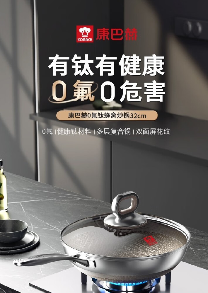 康巴赫(KBH)0氟钛蜂窝炒锅-套装 32cm LPB-C32T