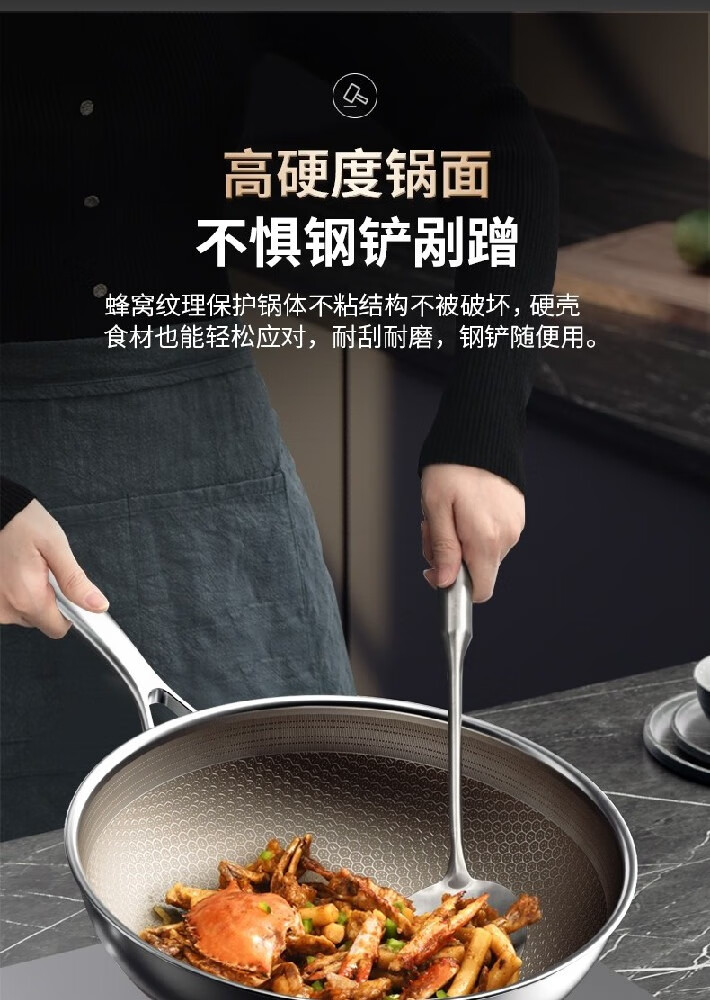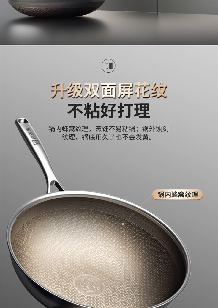 康巴赫(KBH)红点感温316L双全面屏蜂窝炒锅 32cm LPB-C32W