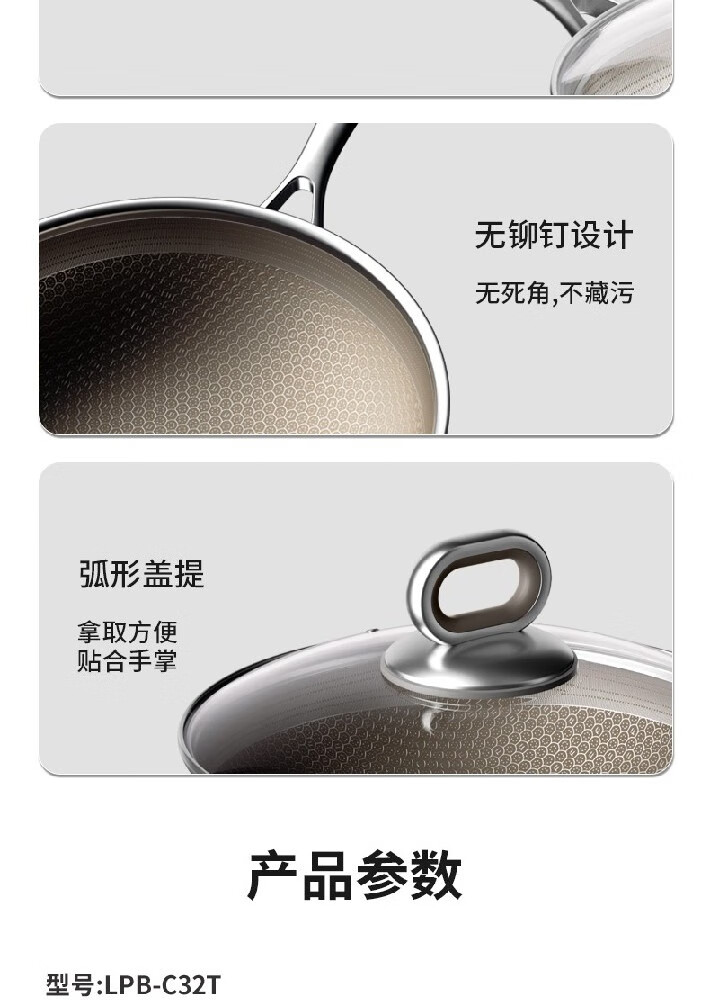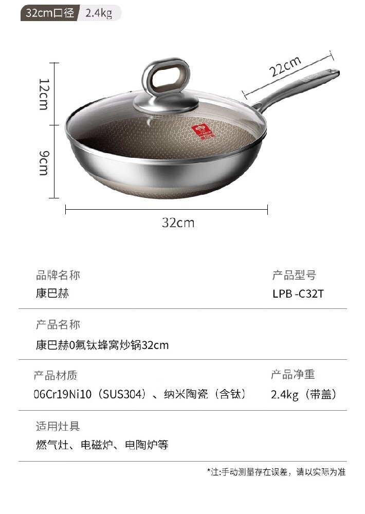 商品名称:康巴赫(KBH)0氟钛蜂窝炒锅-套装 32cm LPB-C32T