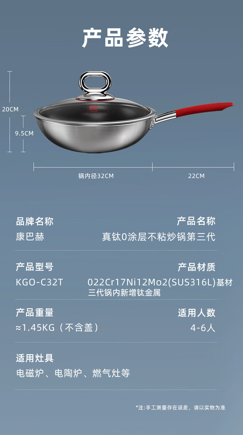 商品名称:康巴赫(KBH)真钛0涂层不粘炒锅第三代 32cm KGO-C32T