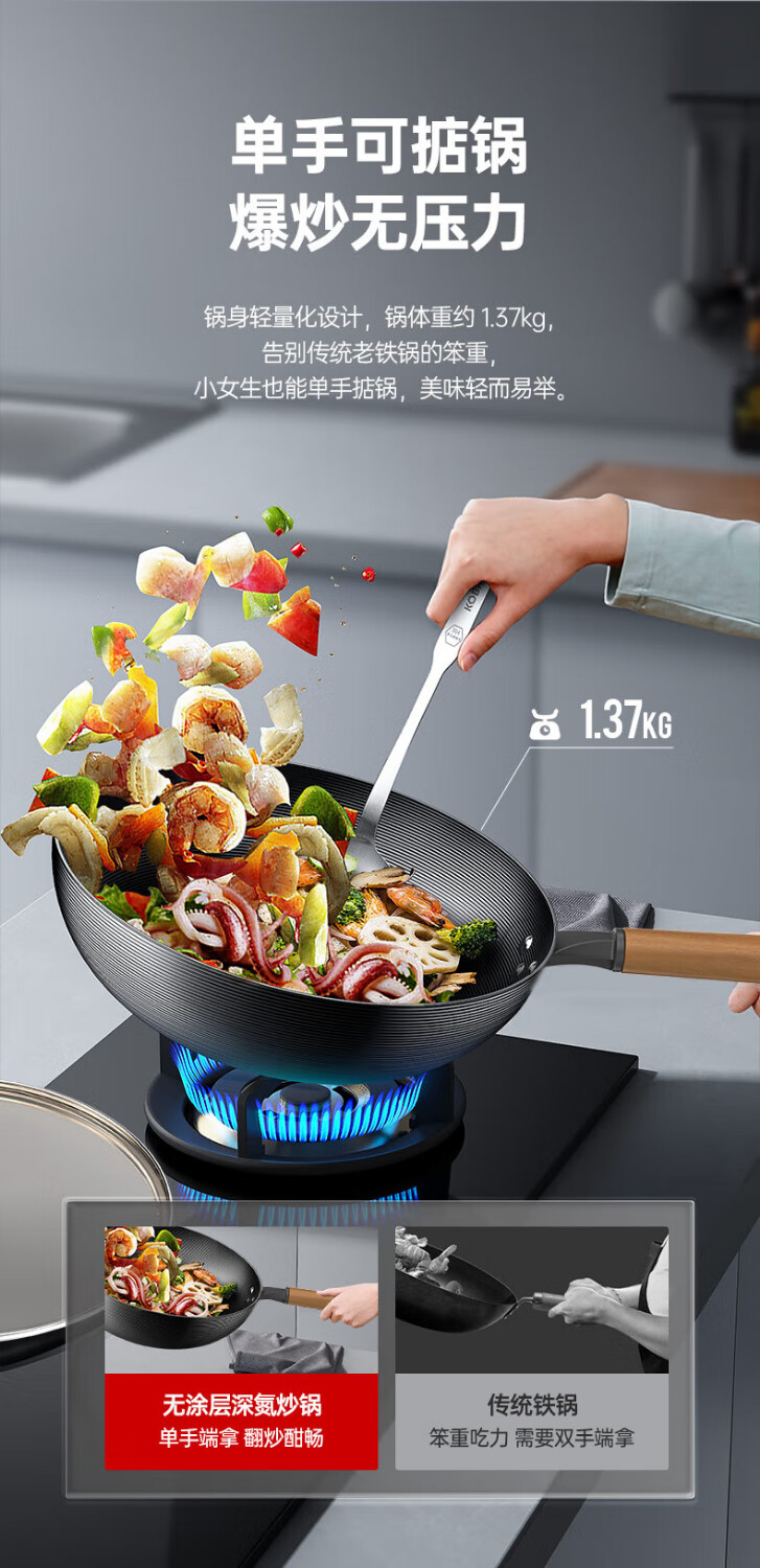 商品名称:康巴赫(KBH)无涂层深氮炒锅+铲子 32cm LPB-C32S