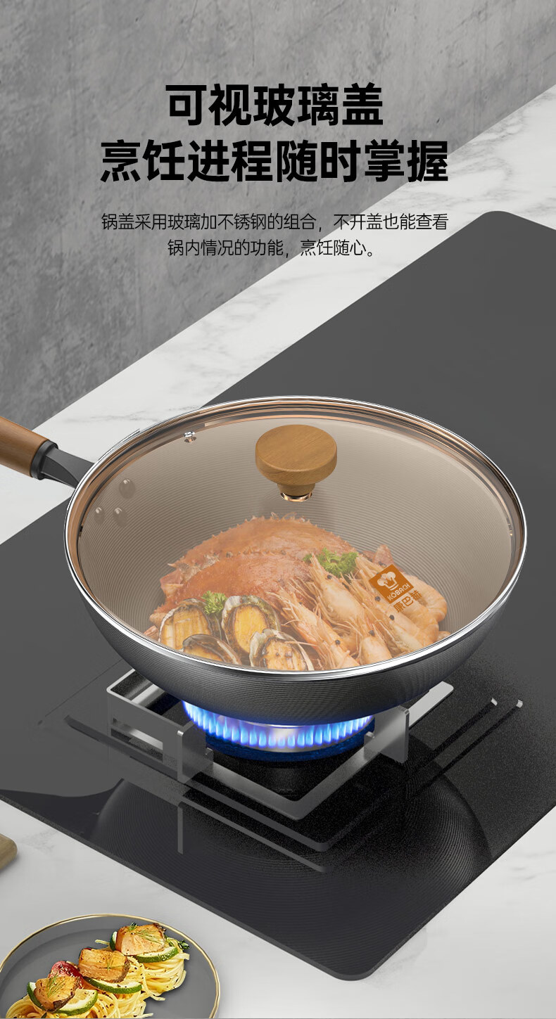 康巴赫(KBH)钛盾无涂层不粘锅炒锅 32cm KGT-C32E