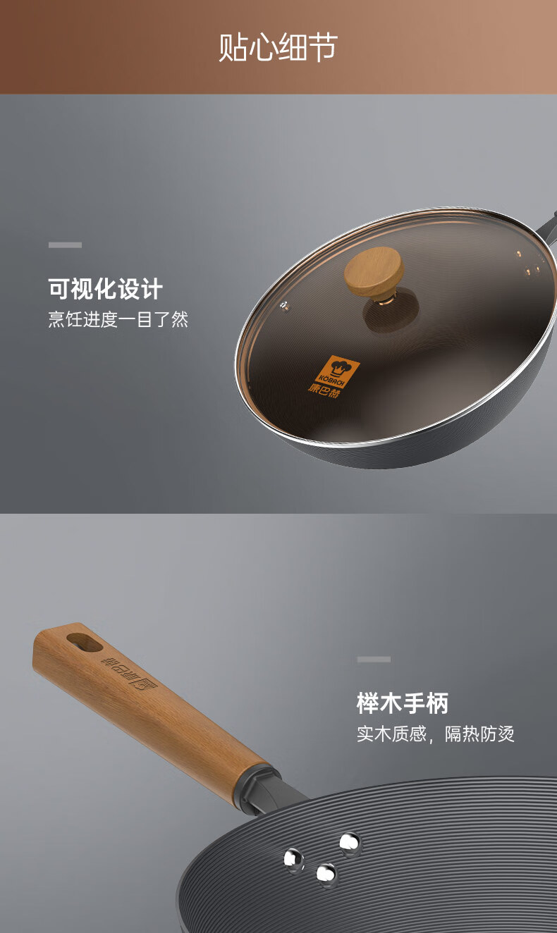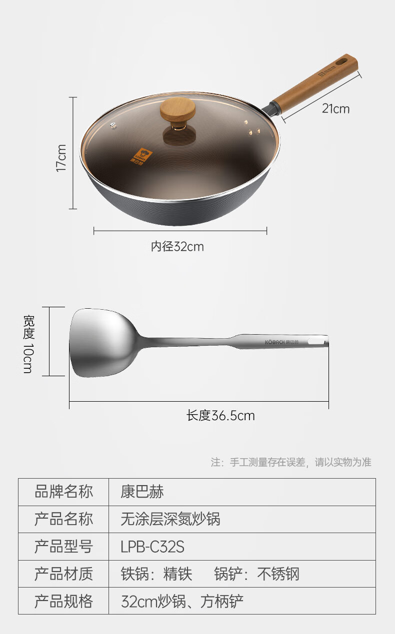 康巴赫(KBH)无涂层深氮炒锅+铲子 32cm LPB-C32S