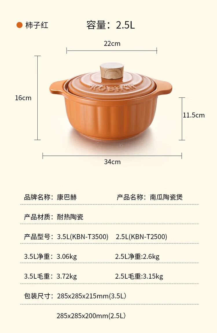 商品名称:康巴赫(KBH)南瓜陶瓷煲 (3.5L) KBN-T3500