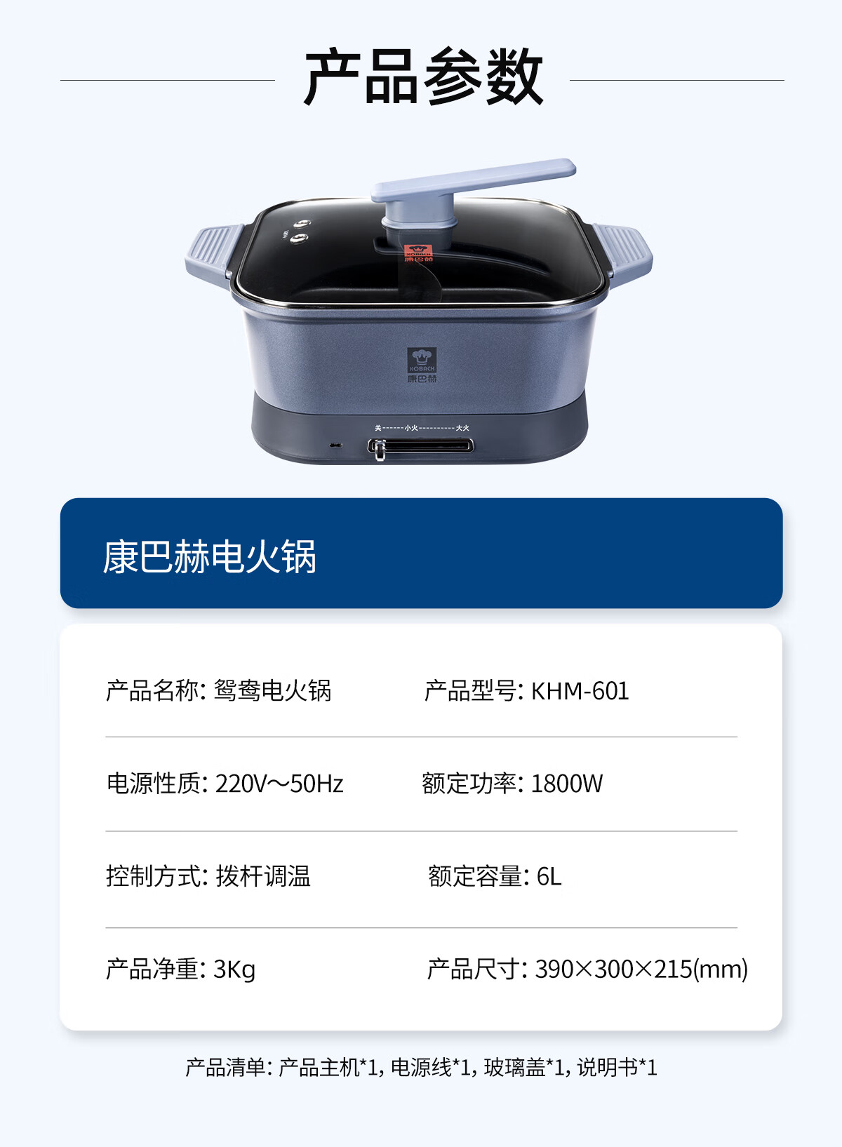 商品名称:康巴赫(KBH)KHM-601