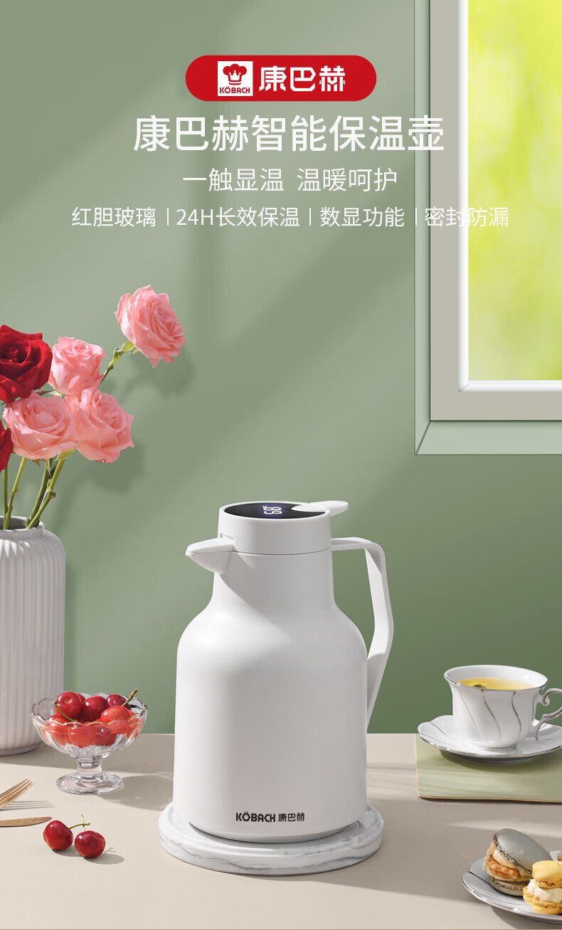 康巴赫(KBH)丹顶鹤智能红胆玻璃保温壶 1.5L KHA-H1.5LA
