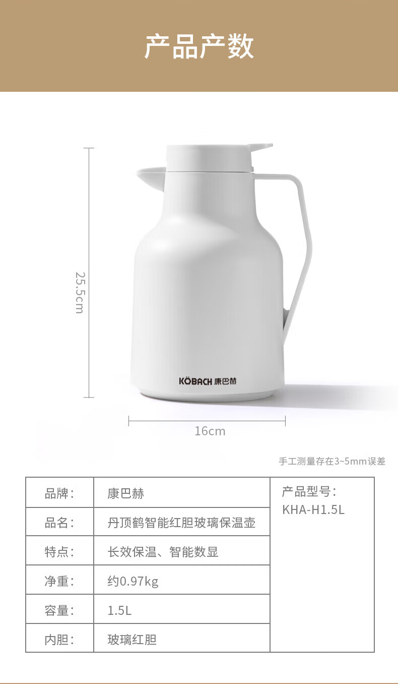 商品名称:康巴赫(KBH)丹顶鹤智能红胆玻璃保温壶 1.5L KHA-H1.5LA