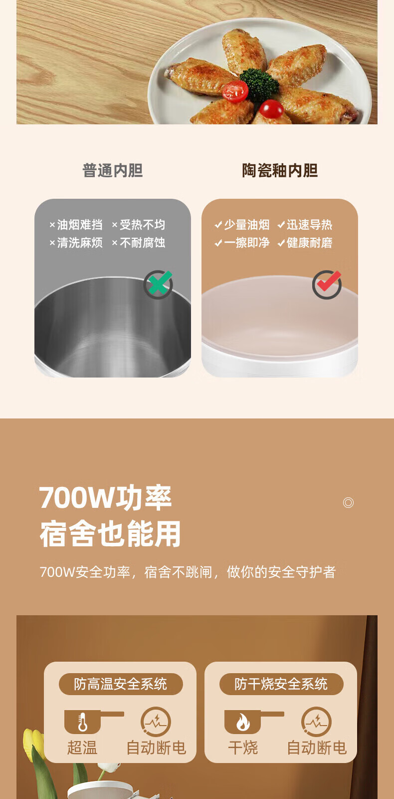 内胆材质 :食品级不粘锅胆