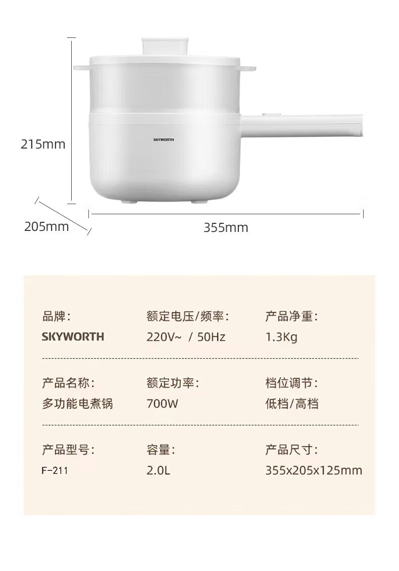 商品名称:创维 多用途锅 2L F211
