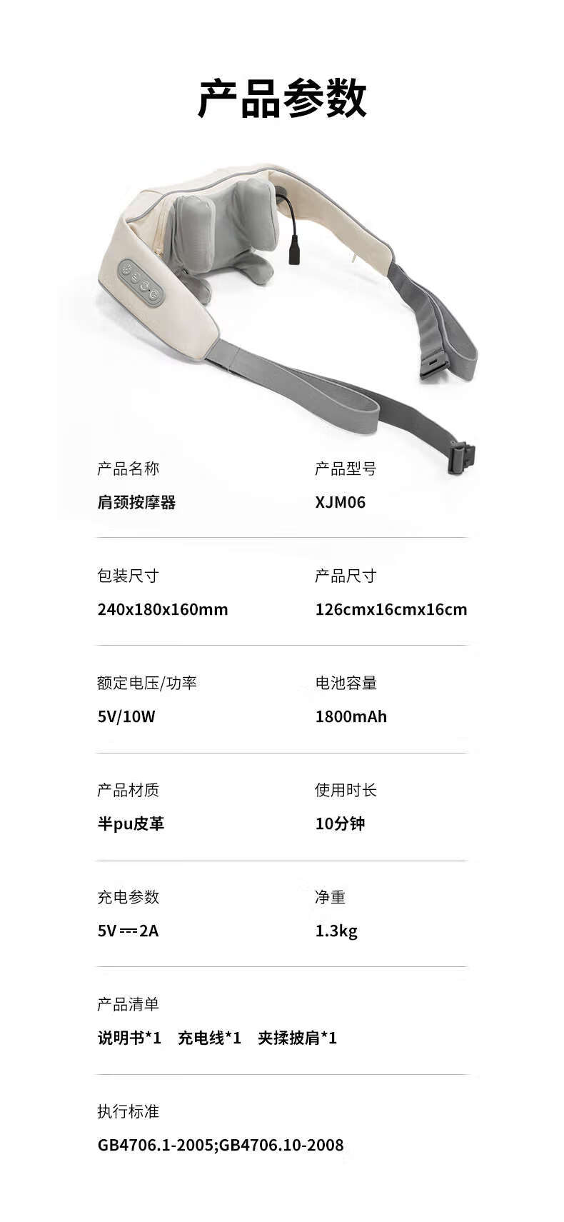 商品名称:小句 肩颈按摩器 10W XJM06