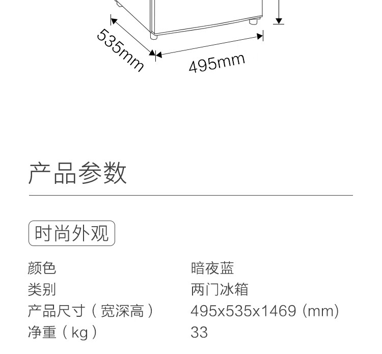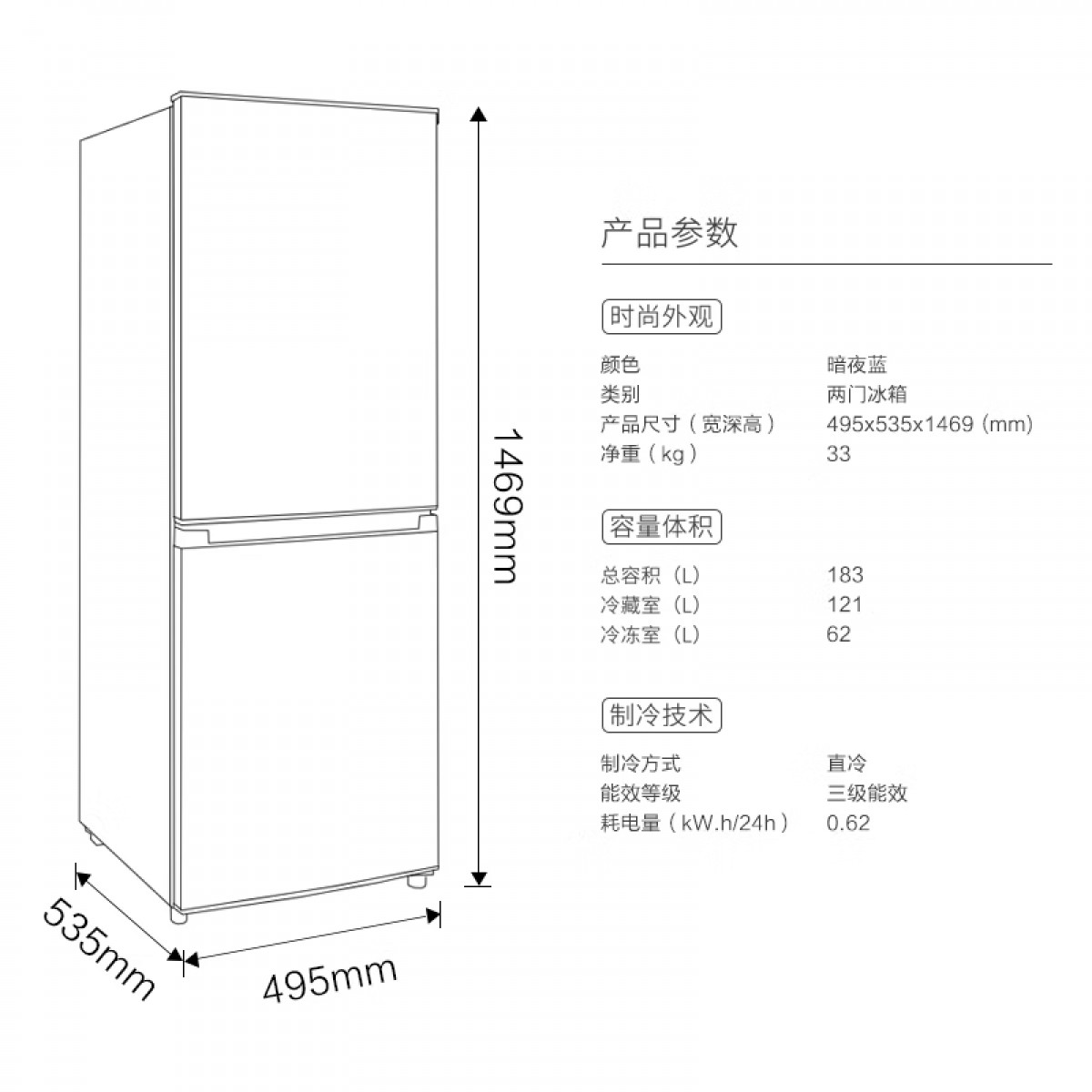 商品名称:创维 冰箱 暗夜蓝 183升两门 BCD-183D