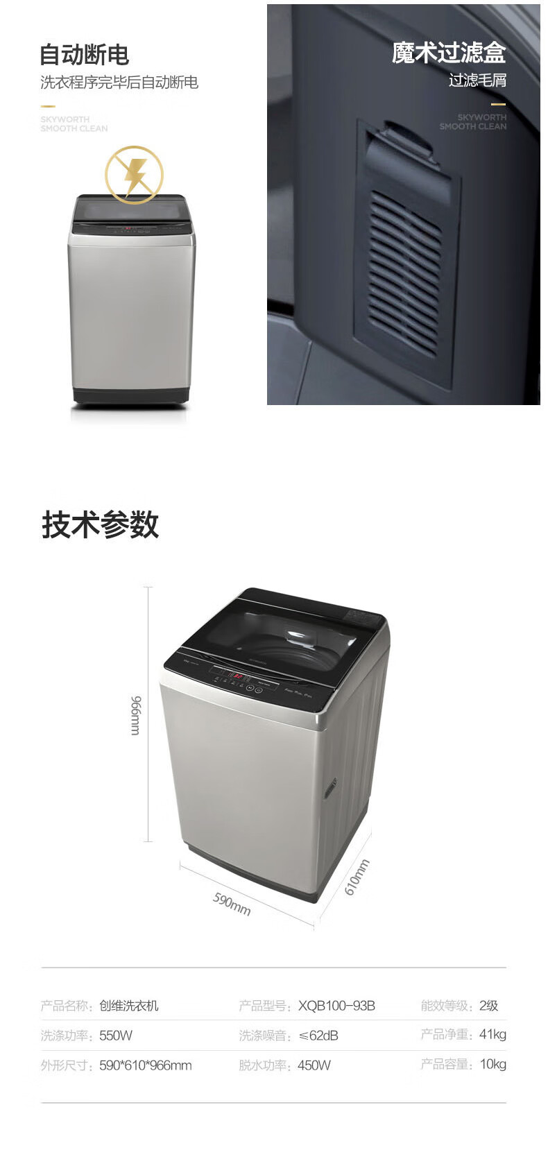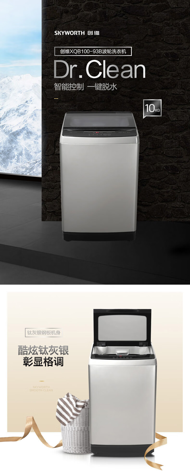 商品名称:创维 洗衣机 10KG XQB100-93B钛灰银