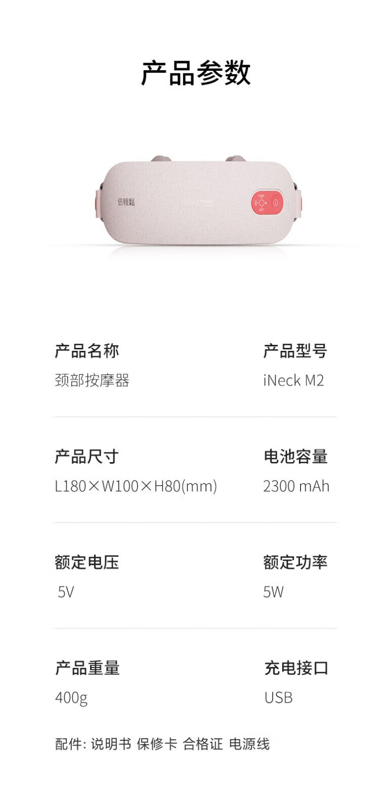 商品名称:倍轻松(breo) 颈部按摩器 5w iNeck M2