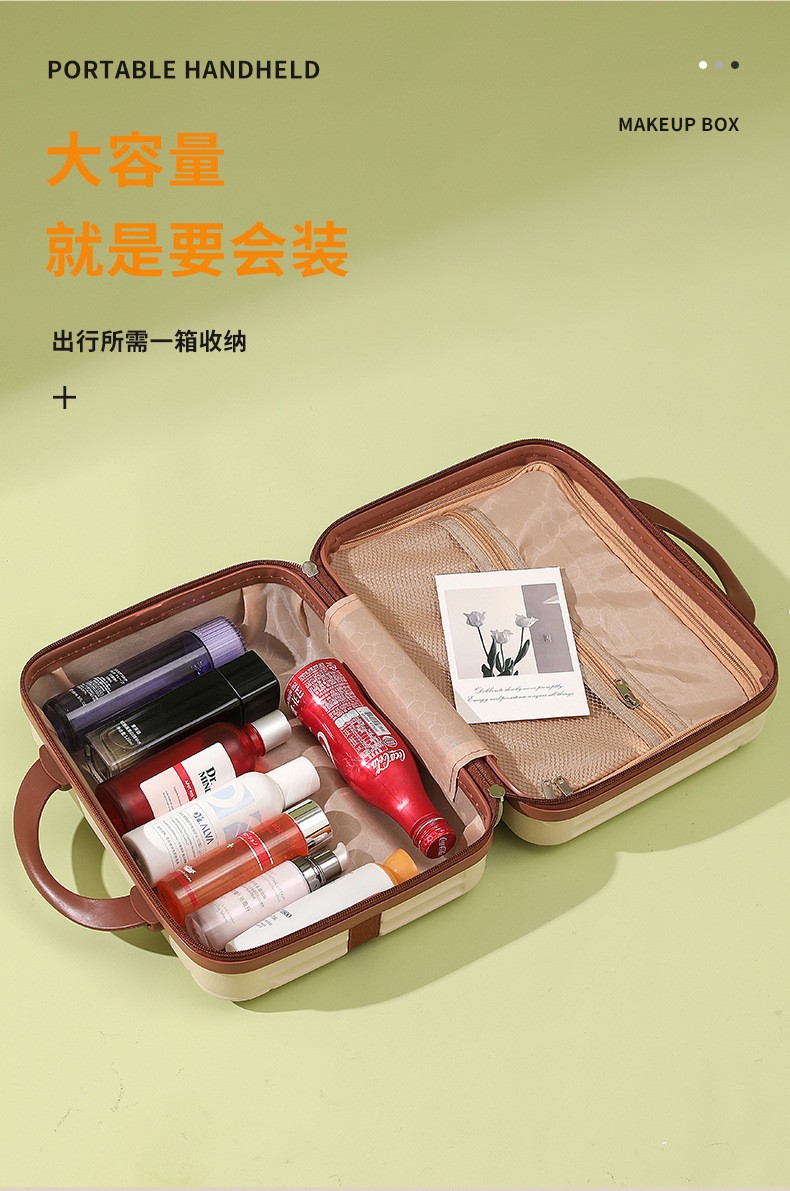 商品名称:复古化妆箱迷你手提箱子小行李箱伴手礼化妆包密码旅行箱 14寸 可定制