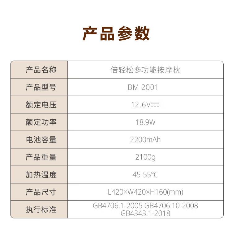 商品名称:倍轻松(breo) 多功能按摩枕 18.9w BM 2001