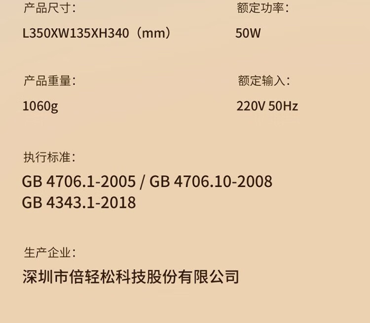 商品名称:倍轻松(breo) 捶腰背按摩器 50w B2