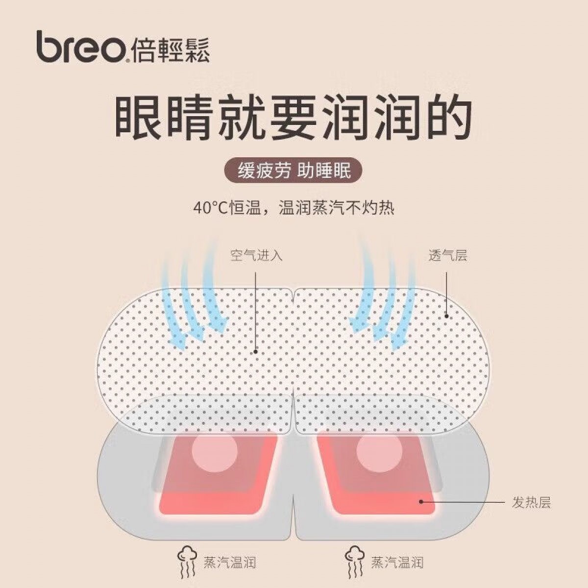 商品名称:倍轻松(breo) 热敷蒸汽眼罩(5片装)
