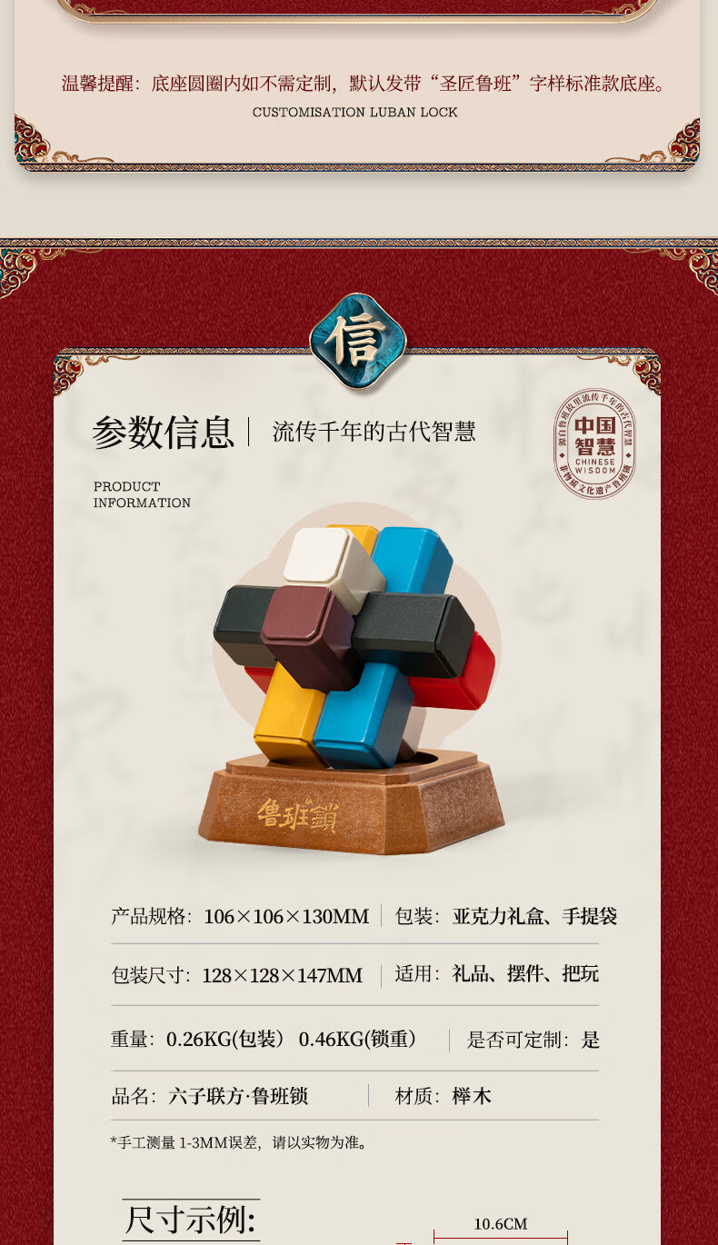 商品名称:圣匠鲁班 六子联方 · 鲁班 10.6*10.6*13cm