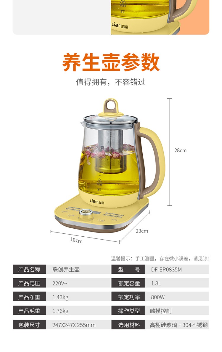 商品名称:联创(LIAN) 养生壶 DF-EP0835M