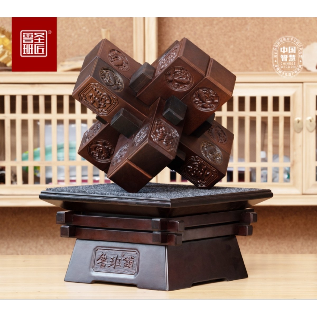 圣匠鲁班 连年有余浮雕鲁班锁 36*36*36cm(鲁班锁70款) 35*35*18.6cm(展台)