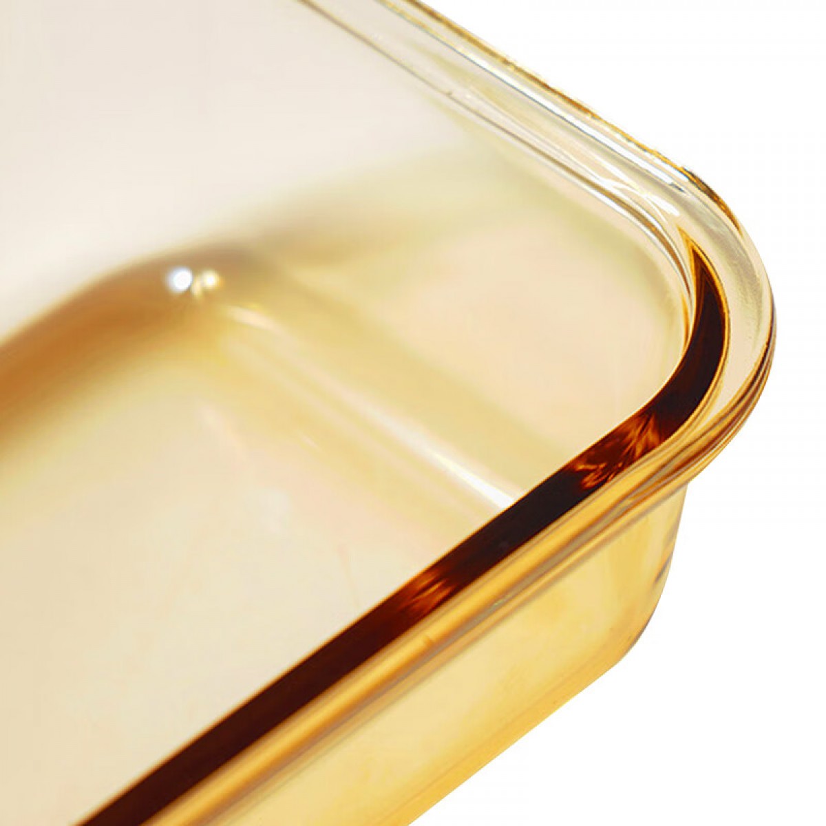 乐扣乐扣 莱茵灵动琥珀色长方形玻璃保鲜盒二件套 大长 1050ml LCB236FU