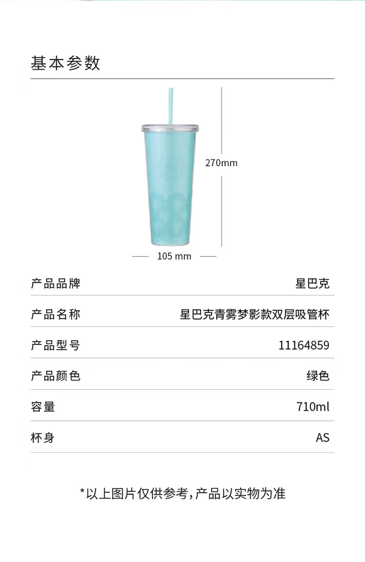 商品名称:星巴克 青雾梦影款双层吸管杯 710mL 11164859