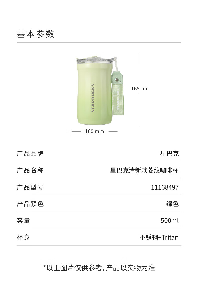 商品名称:星巴克 清新款菱纹咖啡杯 500mL 11168497