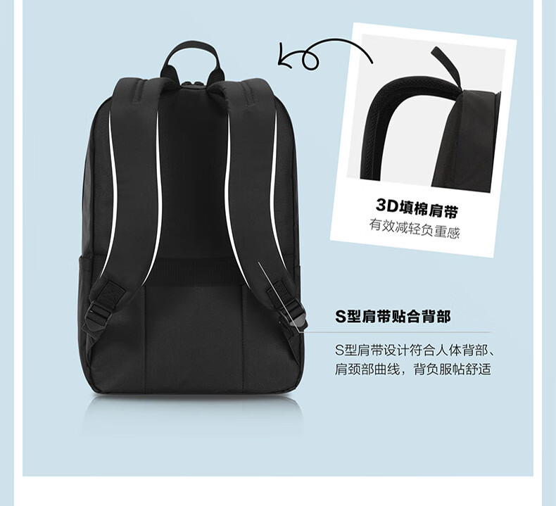 商品名称:美旅 双肩包黑色 30×16×43cm NM5*09001