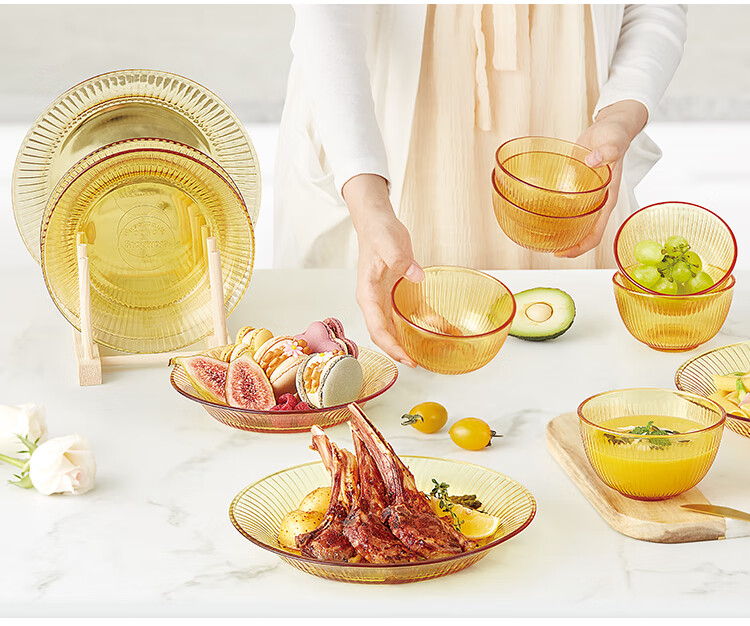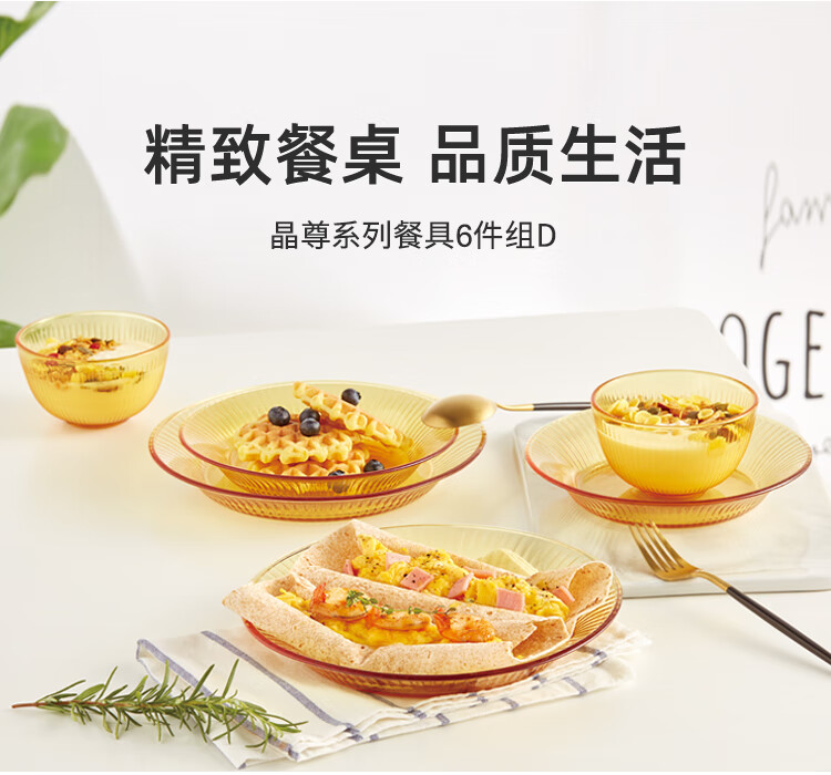 康宁Snapware晶尊系列餐具6件组D 饭碗336ml 深盘453ml 浅盘665ml SNAMD6D/KZYL(黄盒)