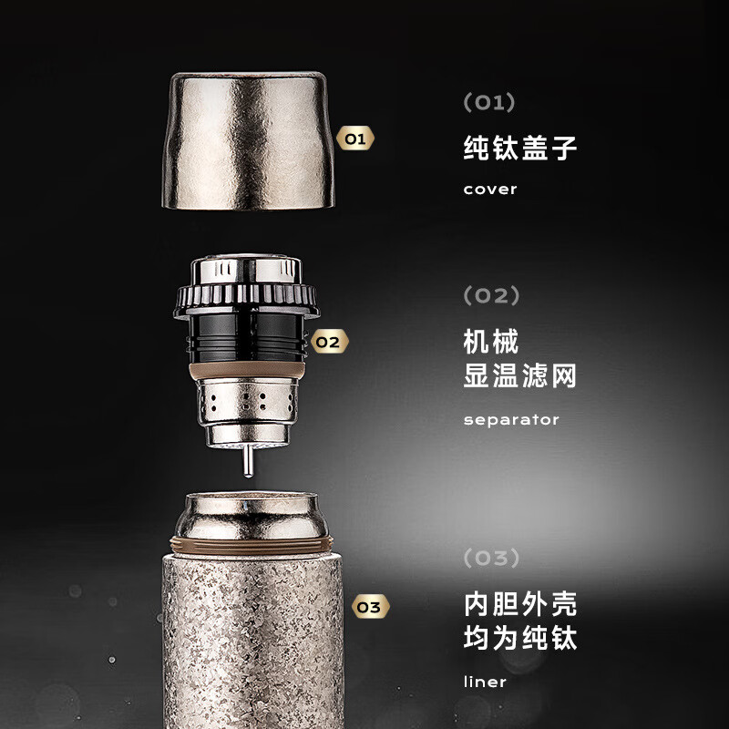 明霞 琉光机械温显钛保温杯 420ml MXTB01