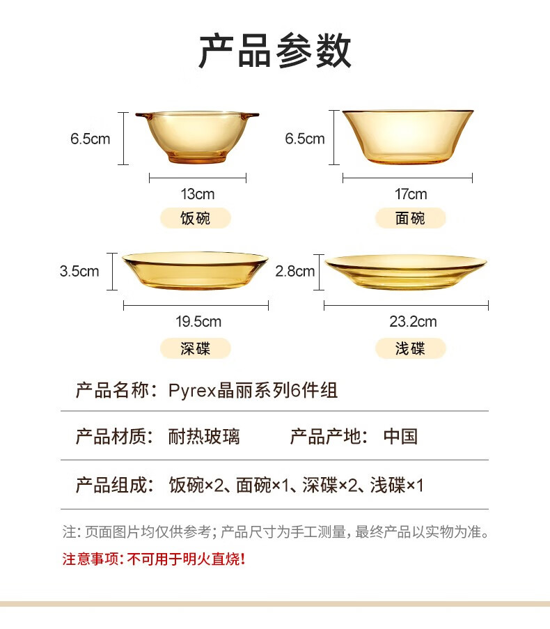 商品名称:康宁 Pyrex晶丽系列餐具6件组 OV-JL-6A/KZYL