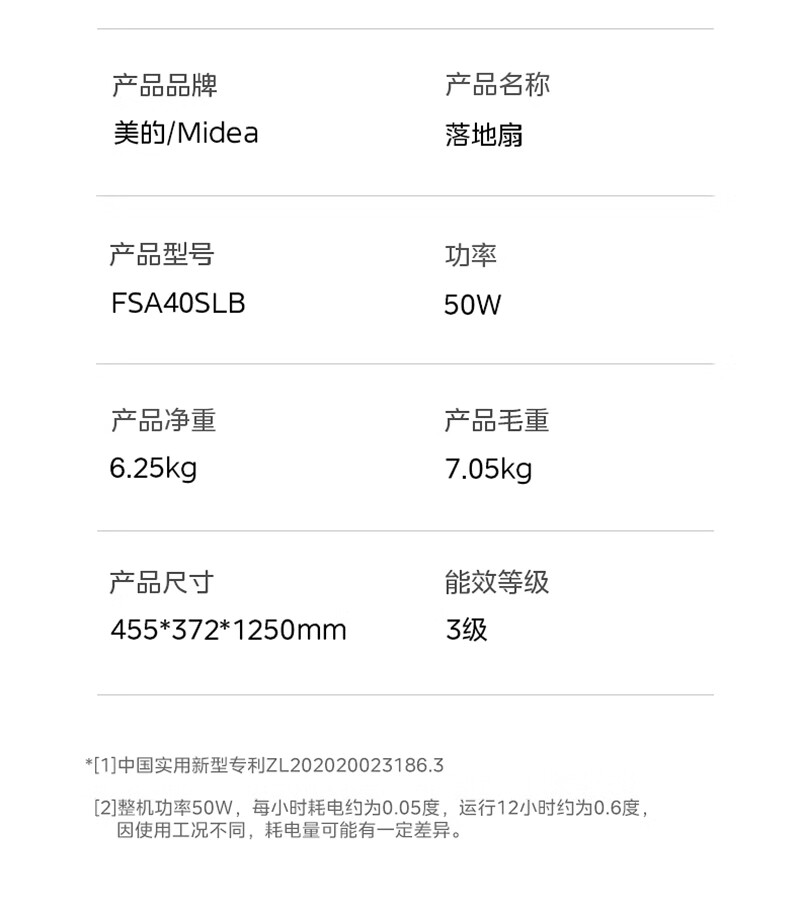 商品名称:美的 7叶落地扇 FSA40SLB