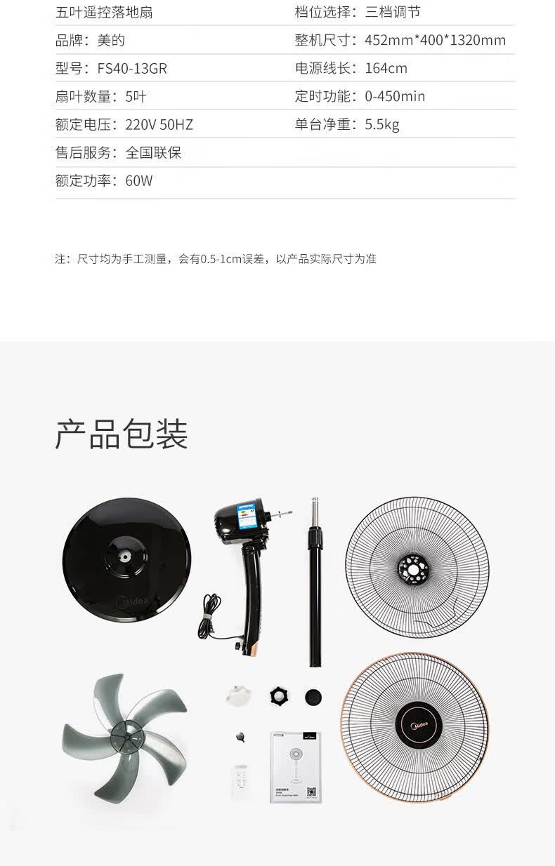 商品名称:美的 遥控落地扇 FS40-13GR