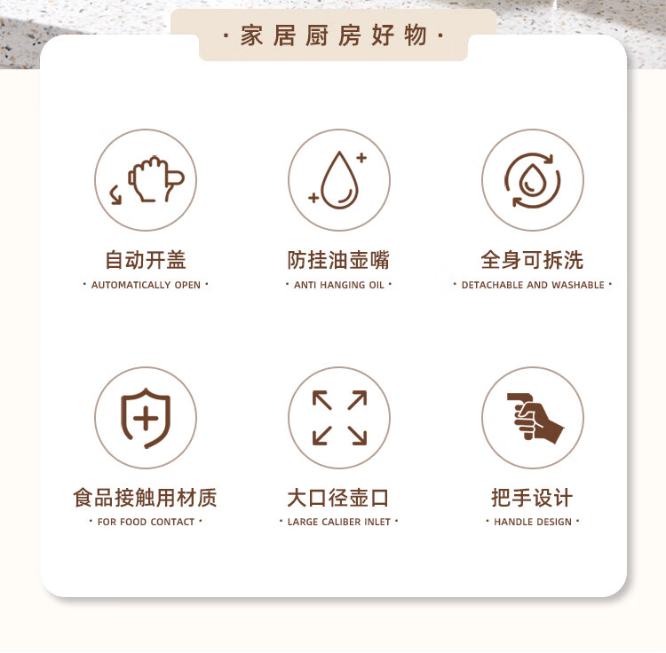 套装规格 :自开合油壶*1、围纸*1