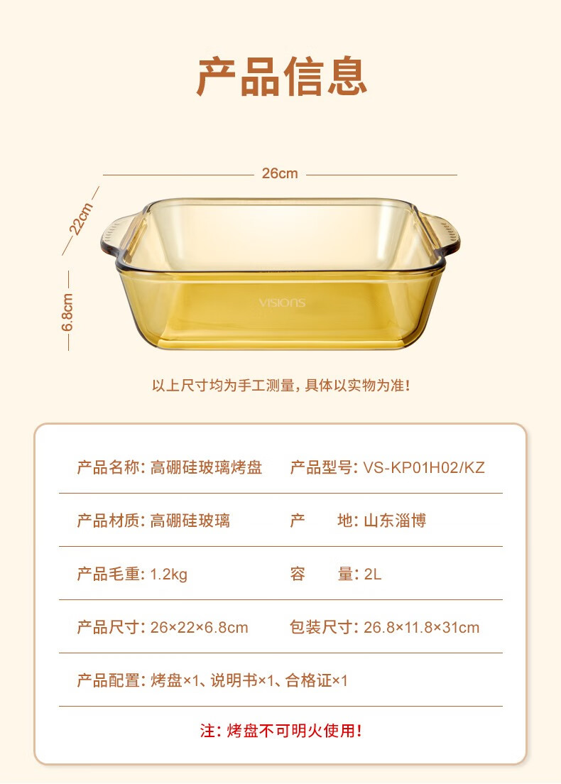 商品名称:康宁 VISIONS高硼硅玻璃烤盘 2L VS-KP01H02/KZ