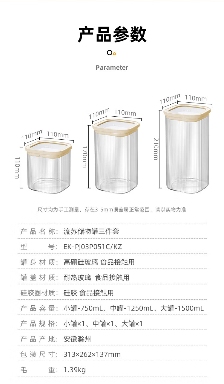 产品尺寸 :大罐:21*11*11cm;中罐:16*11*11cm;小罐:11*11*11cm