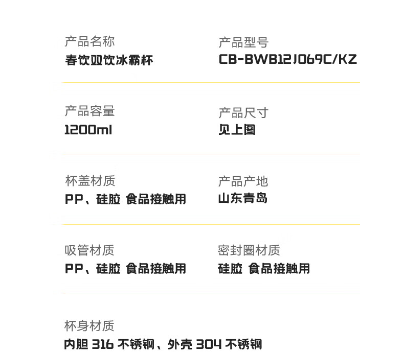 商品名称:康宁 春山双饮冰霸杯 1200ml CB-BWB12J069C/KZ