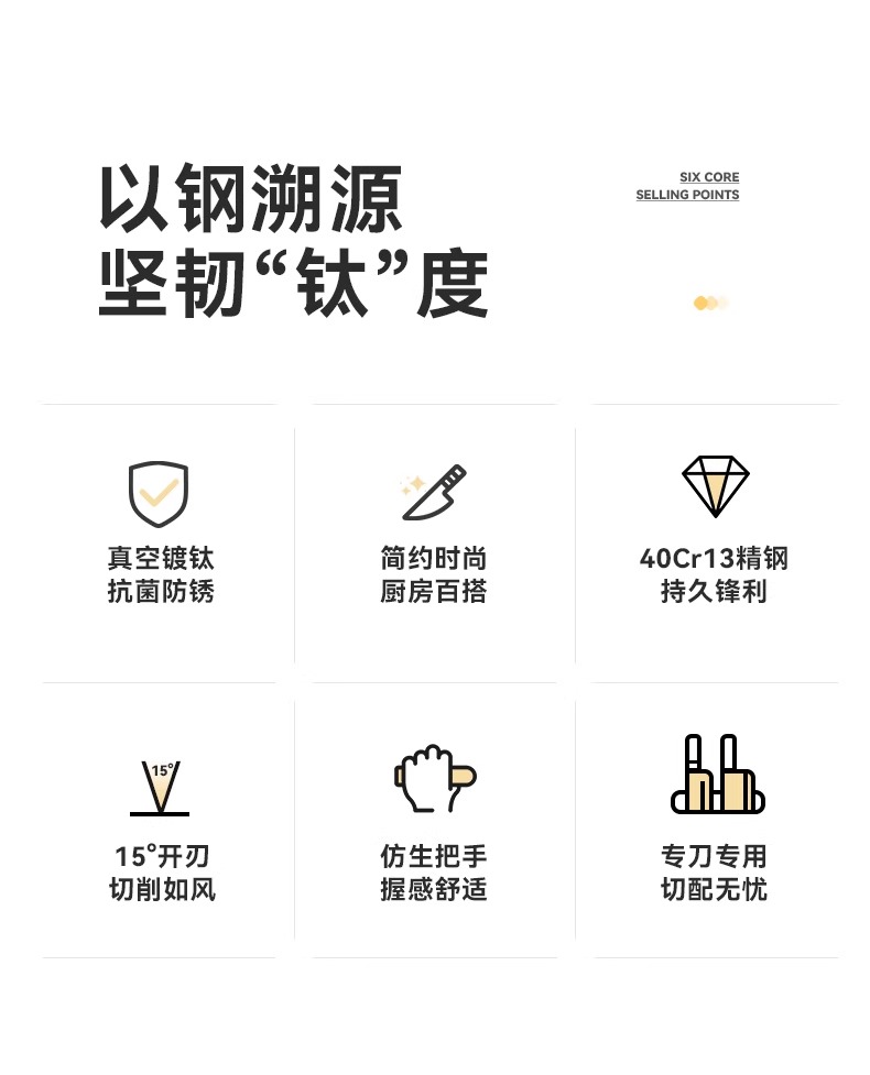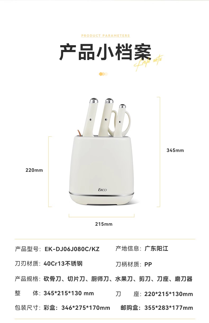 商品名称:康宁 柔刃镀钛刀具套装 EK-DJ06J080C/KZ