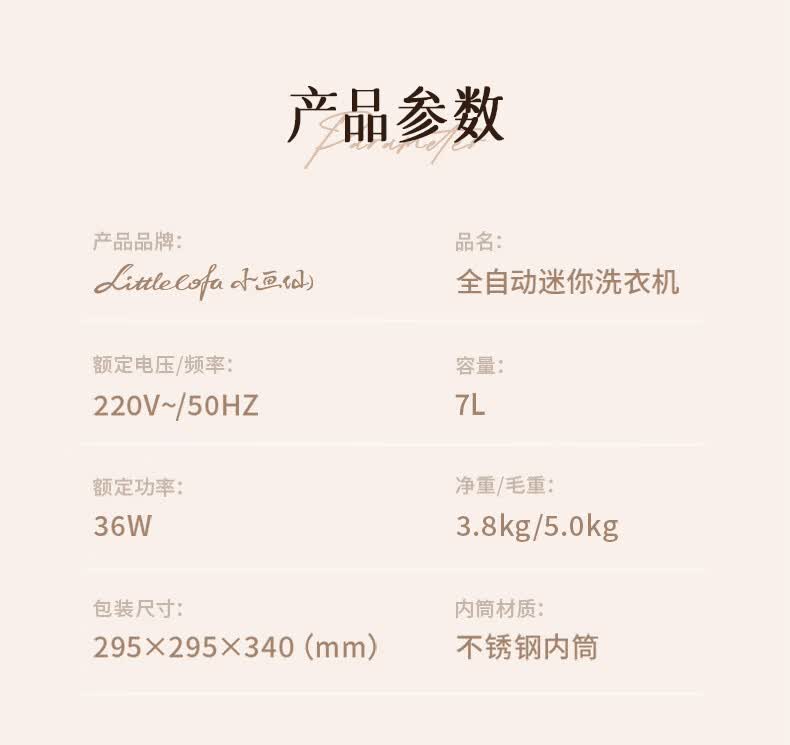 商品名称:小画仙 洗衣机迷你小型 7L LXYJ-0301