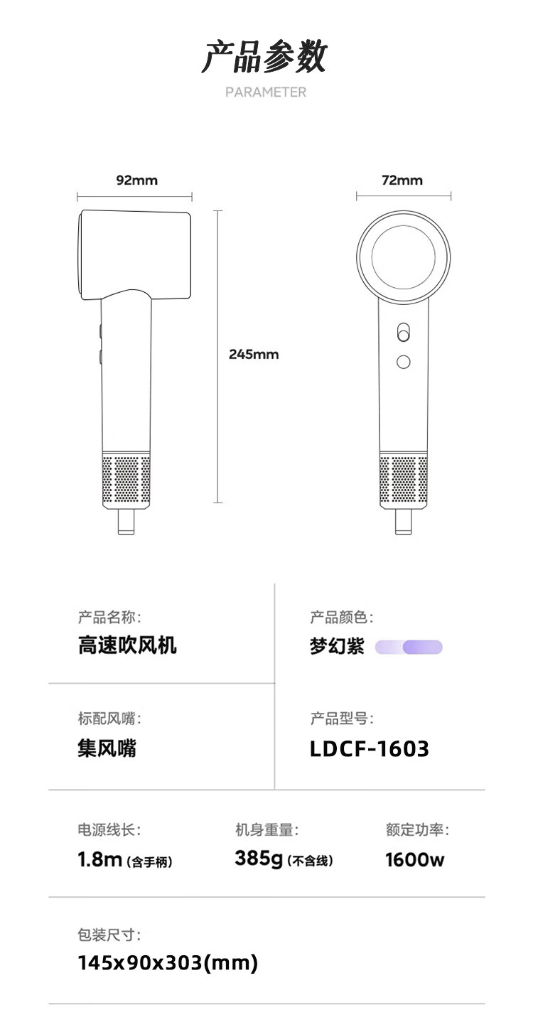 商品名称:小画仙 无叶高速吹风机 LDCF-1603
