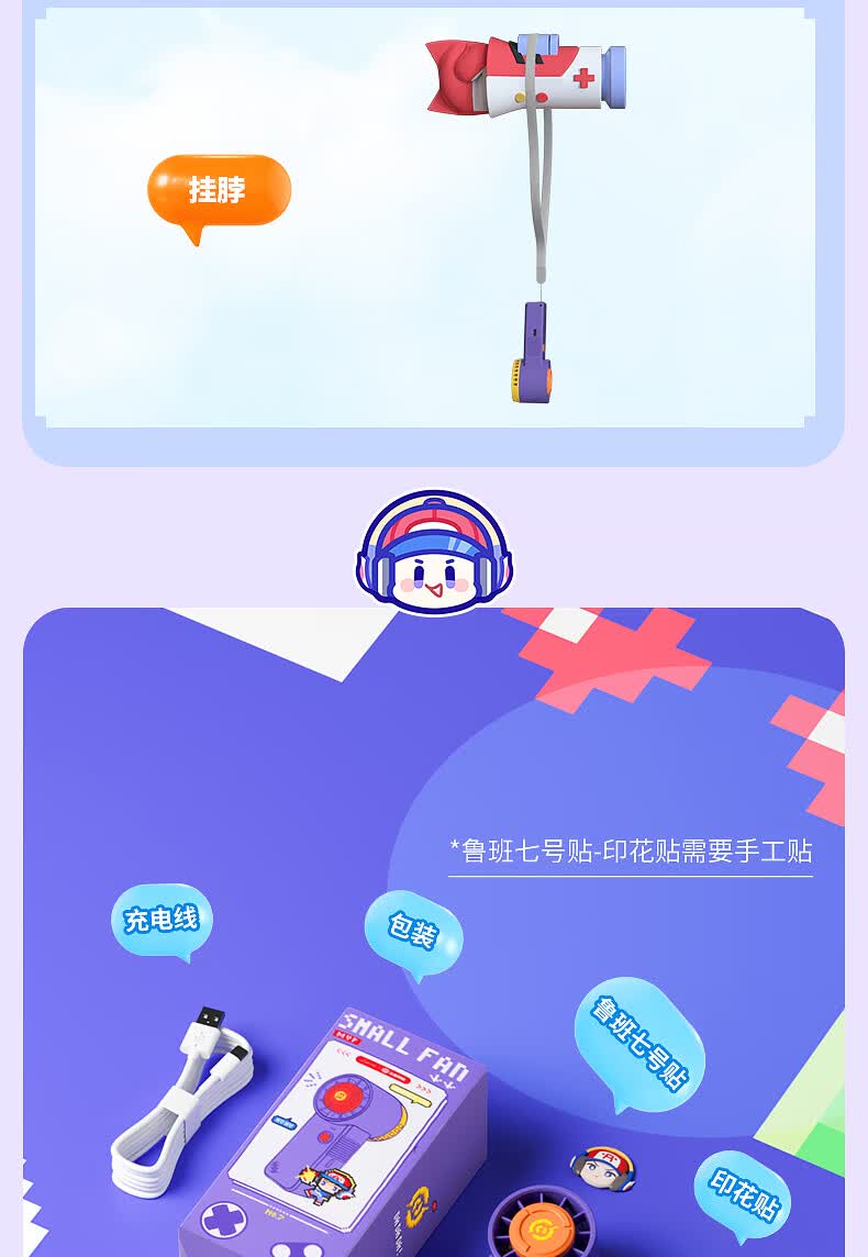 商品名称:小画仙 王者荣耀联名鲁班款手持小风扇便携式迷你风扇 LDFS-0101-BWZ
