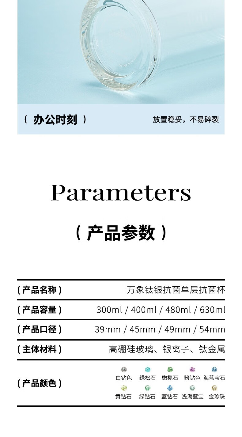 商品名称:万象 钛银抗菌单层玻璃杯 480ml TU47