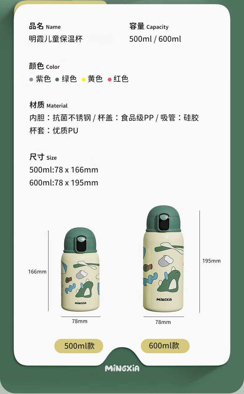 商品名称:明霞 智能儿童外保温杯 500ml MXCS72-500