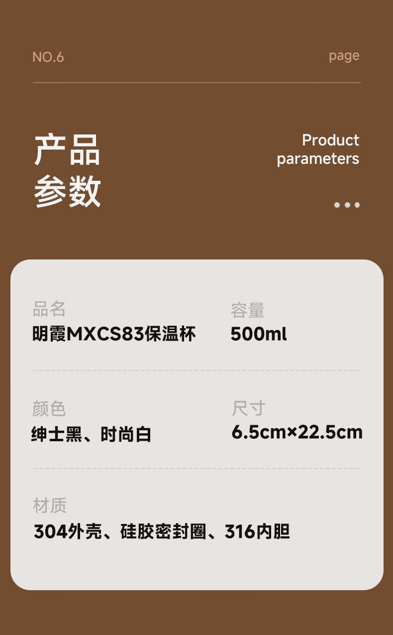 商品名称:明霞 商务保温杯 500ML MXCS83-500