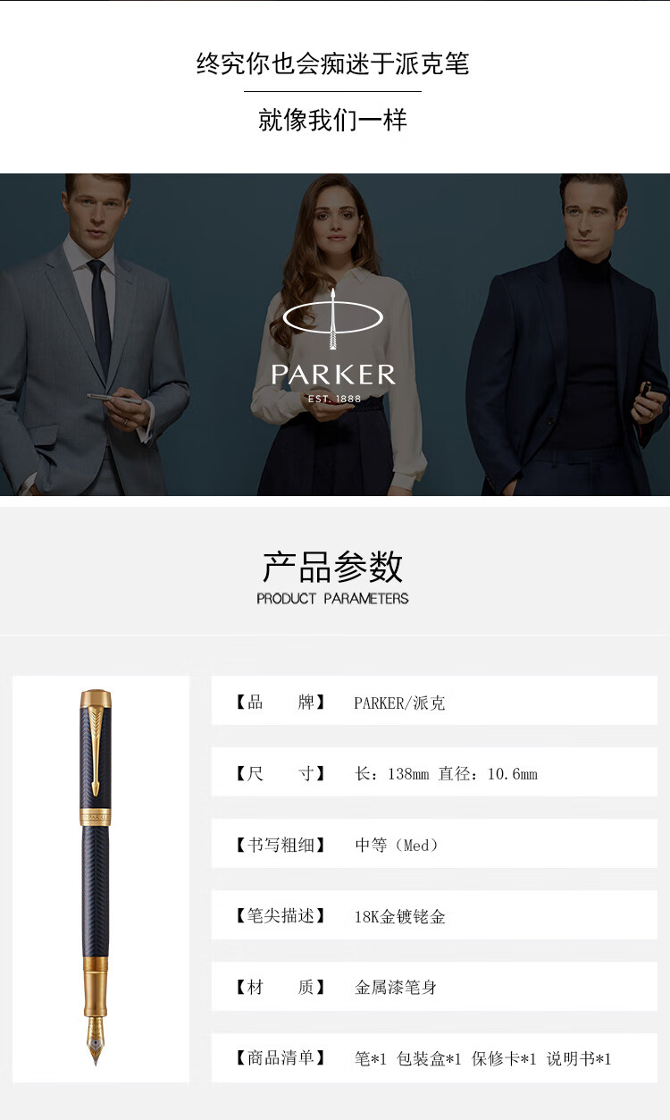 商品名称:派克(PARKER) 世纪蓝金岁月墨水笔